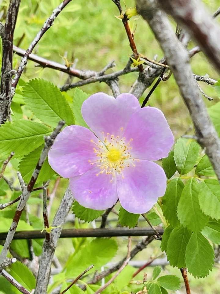 Wild rose, perhaps Smooth Wild Rose, Rosa blanda, Polk County, MN. Photo by Danielle, June 2025.