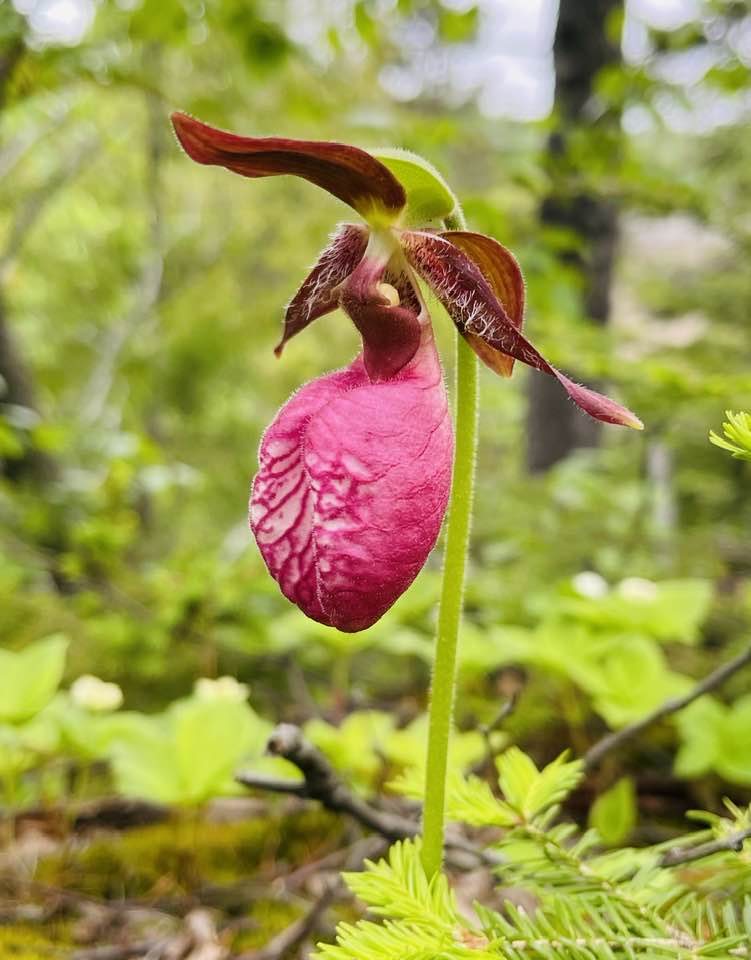 Pink Lady’s Slipper, Cypripedium acaule, Cook County, MN. Photo by Danielle, 2025.